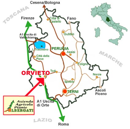 will lead you to Località Arcone where the nursery is. Distances from the nursery and the main cities: |